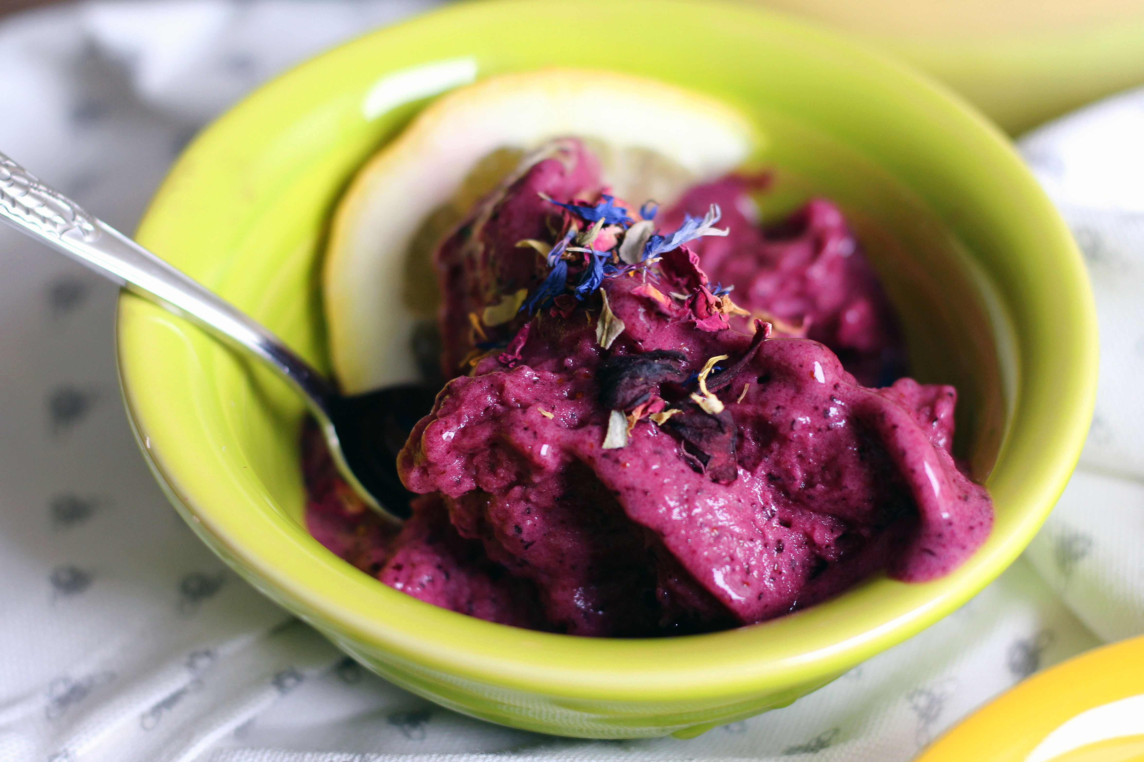 Wild Blueberry Lemon Nice Cream with Edible Flowers