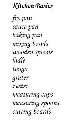 Stock up on some staples. Do you have a good knife? A saucepan? Getting the tools of the trade is an inspiring and necessary first step. Go on a culinary shopping spree, or collect them little at a time. If you are still using your grandmother’s rusty old baking pan, replace it for something new. You can always keep the old one – for posterity.