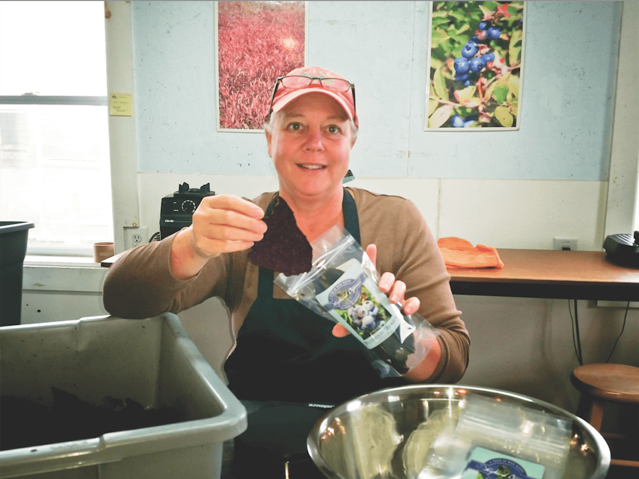 Highland Blueberry Farm sells most of its berries to Todd Merrill up at Merrill Blueberry Farms in Ellsworth, which freezes them using a cool system called IQF. But the Gaffney’s harvest the leaves too, and over the years, they have tried their hand at a little product development.