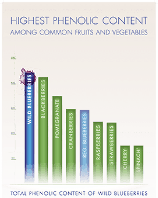 Remarkably, among the 26 fruits and 27 vegetables most commonly consumed in the United States, Wild Blueberries ranked #1 (beating out blackberries, pomegranates and cultivated blueberries) for the highest total phenolic content per serving. If you know anything about Wild Blueberries, then you won’t be surprised they ranked first.