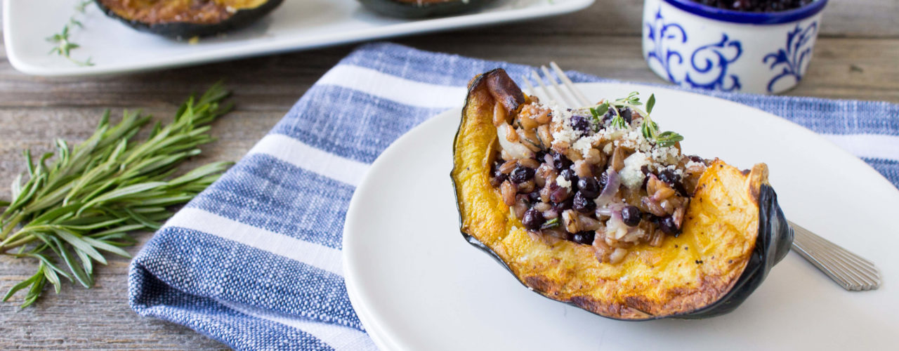 Stuffed Acorn Squash with Farro and Wild Blueberries