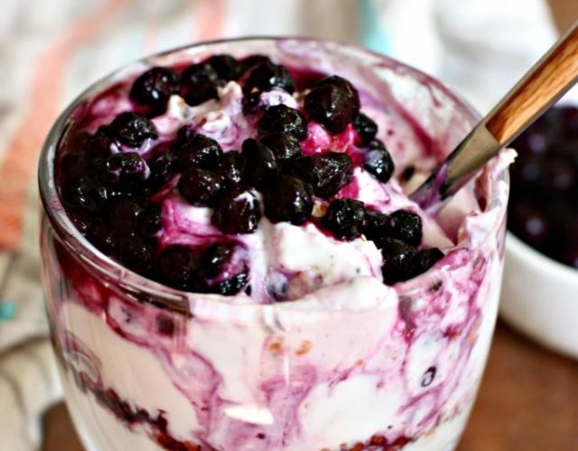 - In each glass layer the oats, the yogurt and the Wild Blueberries.