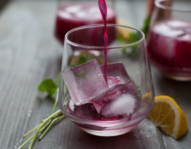 - Pour into a rocks glass filled with a few ice cubes and top off with club soda. Garnish with frozen Wild Blueberries and mint leaves.