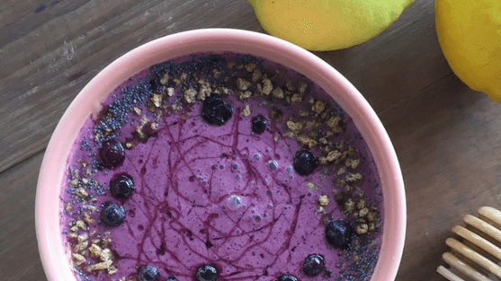 - For smoothie bowl, pour into bowl and garnish with frozen blueberries, whole grain cereal, extra poppyseed and drizzle of honey or maple syrup.