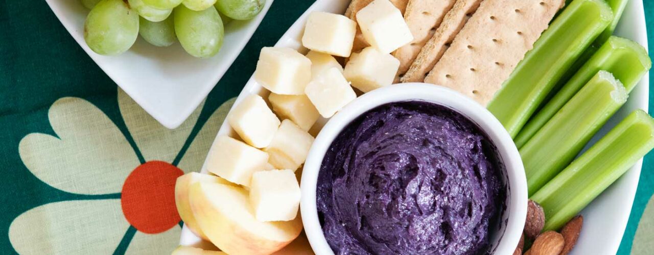 Print RecipeApples, cubed cheese, graham crackers, and celery served with a wild blueberry and peanut butter dip. Substitute any nut butter for the peanut butter. This could be served at lunch or breakfast. The wild blueberry and peanut butter dip also tastes great on a sandwich!