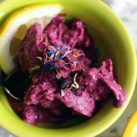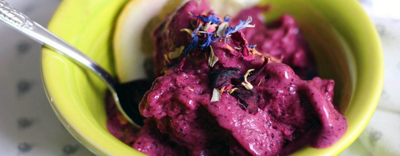 Wild Blueberry Lemon Nice Cream with Edible Flowers