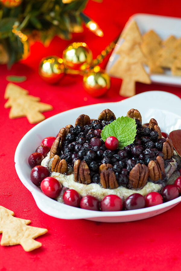 - Garnish with cranberries and mint leaf. Serve with gluten-free Christmas tree crackers. (See link to recipe in the first paragraph of this post.)