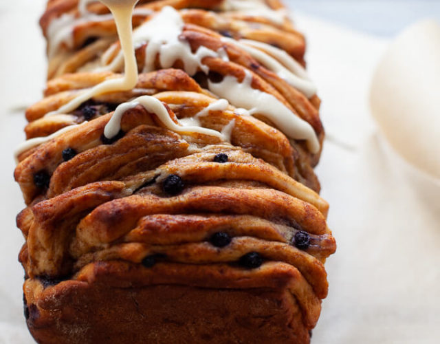 - Slice the dough evenly into six vertical strips. Stack the strips one on top of the other, covering evenly with frozen Wild Blueberries as you stack. Slice the stack into six equal squares.