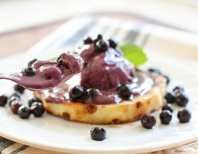 Serve slightly cooled pineapple with Wild Blueberry soft serve and top with additional Wild Blueberries.