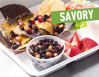 1.In a heavy pot, heat the olive oil. Add the chopped onion and garlic and cook until transparent. Add the blueberries to the onion mixture, cover, and cook until the blueberries soften, about 10 minutes.