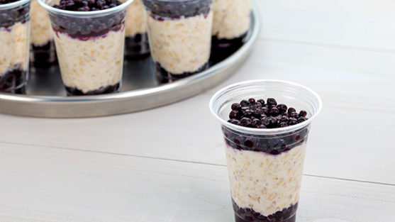 5.Alternatively, place the overnight oats and the chilled wild blueberries on a self-service bar. Serve 5/8 cup (#6 scoop) of overnight oats and ½ cup (#8 scoop) of wild blueberries.
