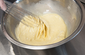 1. Whisk 24 eggs and fold in ricotta cheese, reserve. In a bowl, mix remaining eggs, milk, vanilla, cinnamon and salt with a whisk until well-blended.